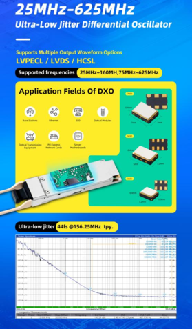 ● 晶振&原子钟:恒温晶振、温补晶振、超低抖动差分晶振、铷原子钟、芯片原子钟统共亮相,其中超低抖动差分晶振抖动值低至44fs,可为光模块、AI高算力耕作提供顶级时钟精度。
